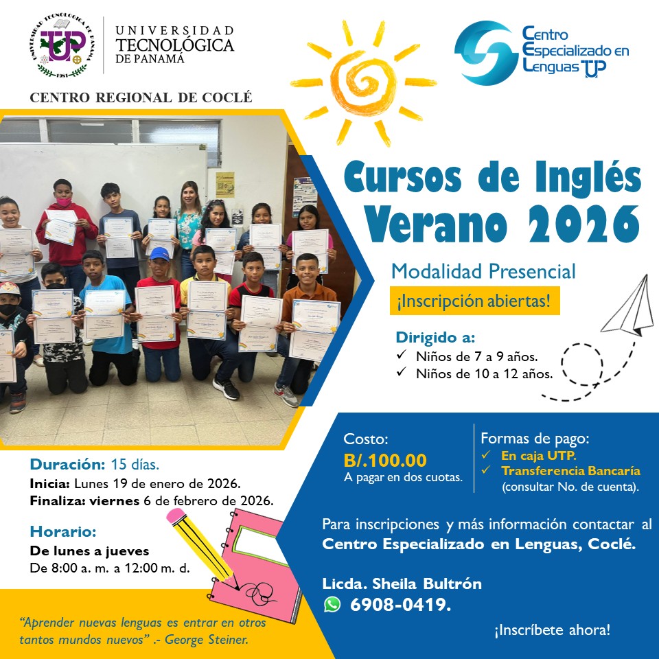 Formas de pago: Por banca en línea o directo en caja del Centro Regional de Coclé.