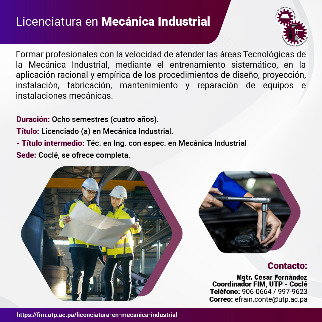 | Licenciatura en Mecánica Industrial (Completa) | Ver afiche promocional (JPG 735 KB) |