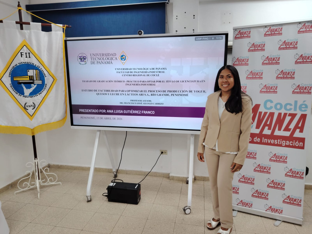 El miércoles 15 de abril de 2026, el Centro Regional de la Universidad Tecnológica de Panamá (UTP) en Coclé fue testigo de un importante avance que une la academia con el desarrollo agroindustrial de la región: la sustentación de tesis de la estudiante Ana Luisa Gutiérrez Franco. La futura ingeniera industrial presentó con éxito su investigación titulada: “Estudio de factibilidad para optimizar el proceso de producción de yogur, quesos y leche en Lácteos ARI S.A., Río Grande, Penonomé”, un trabajo que promete transformar el futuro de una empresa con sello local.